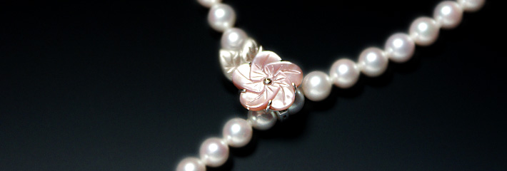 留花(RUKA)。小粋な花をモチーフにした、コーディネイトパールネックレスです。クラスプの位置をかえるだけで多彩なコーディネイトが手軽にお楽しみいただけます。